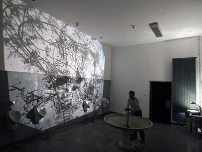 During these months Egied will continue working on his series Liquid Files. The results will be shown at the Foundation. The Summer exposition was opened on Saturday 29 May 2010. Art journalist Anne Berk visited the Verbeke Foundation before and she wrote an enthusiastic article: "Zelfs kunst op het toilet" (Even in the bathroom you can find art"), published at Financieel Dagblad, 30 January 2009.