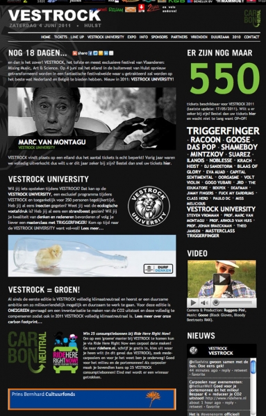 TRIGGERFINGER · RACOON · GOOSE · DAS POP · SHAMEBOY · SUAREZ · MINTZKOV · KRACH · ILANOIS · HEIST · BLAAS OF GLORY · NOBLESSE · DJ SANDSTORM · CAPITAL SENTIMENTAL · GOGO YUBARI · EVA AUAD · VOLT VIOLIN · JRD · OORGASME · DEAFMAN · JIMMY FINGERS · THE EDUKATORZ · FUCK MY EARDRUMS · BEKPEK· CLASS HERO · PAULO DC · VESTROCK UNIVERSITY : STEVEN VROMMAN · THEO JANSEN · PROF. MARC VAN MONTAGU · PROF. JOHAN BRAECKMAN · PROF. ARNOLD VAN HUIS · MASTERCLASS TRIGGERFINGER ·