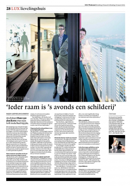 Wat is de charme van hoog wonen? Van den Born: „Hoogbouw in de binnenstad van Amsterdam kan niet. Door de bijzondere geschiedenis van Rotterdam is het hier wél mogelijk. De Red Apple combineert twee kwaliteiten. De stad met al haar aantrekkelijkheden is binnen handbereik. Maar stap in de lift en 45 seconden later heb je privacy en ruimte, onvoorstelbaar veel ruimte. Vaak zit ik in een stoel voor het raam, weg te dromen bij het gezicht op de rivier. Het licht verveelt nooit, het is is altijd anders. Soms kan je vijftig kilometer wegkijken, zie je met een verrekijker Utrecht of Amsterdam. Maar als het mist, leef je opeens in een witte doos.”