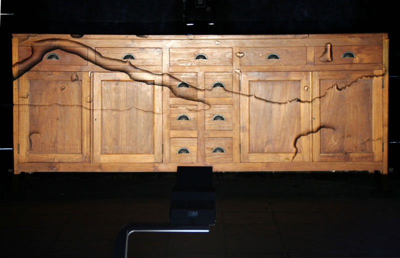 Bij de installatie “Watercourse Asperen, Liquid Gold” leidt Egied water uit de nabijgelegen sloot door de zwarte kolenschuur van Gemaal Asperen. Stromend water zoekt zijn weg over een glazen plaat en wordt met behulp van een overheadprojector sterk uitvergroot geprojecteerd op een momentale houten kast die een vast onderdeel vormt van de ruimte. Waterdruppels rollen over het glas, smelten samen tot stromen en scheiden zich weer af. Spanning aan het oppervlak ontlaadt zich op de houten kast. Stromend water toont zich als vloeibaar goud.